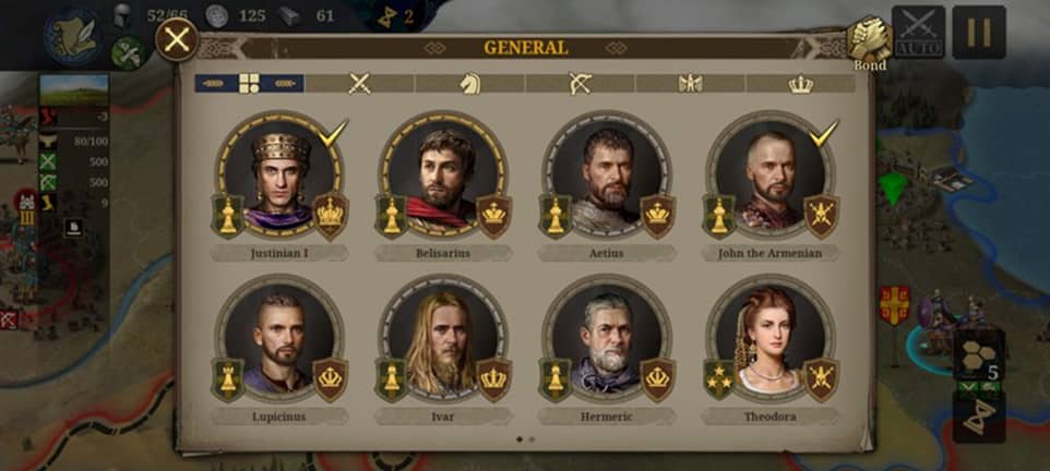 granting bonuses to the resistance of their troops. Choosing the right general for each situation is key